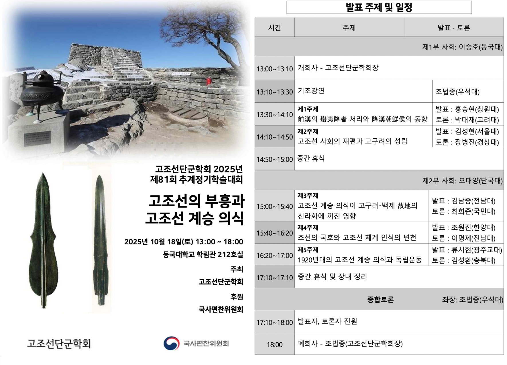 고조선단군학회 2025년 제81회 추계 정기학술대회 "고조선의 부흥과 고조선 계승의식"이 개최됩니다,