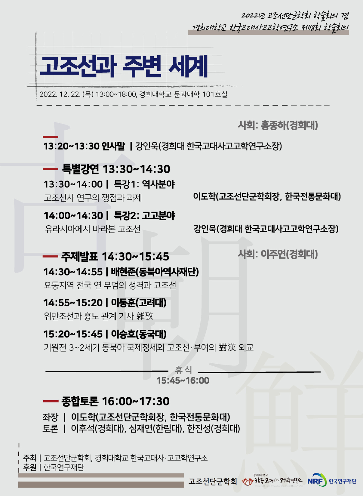 경희대 한국고대사고고학연구소-고조선단군학회 공동학술회의 안내